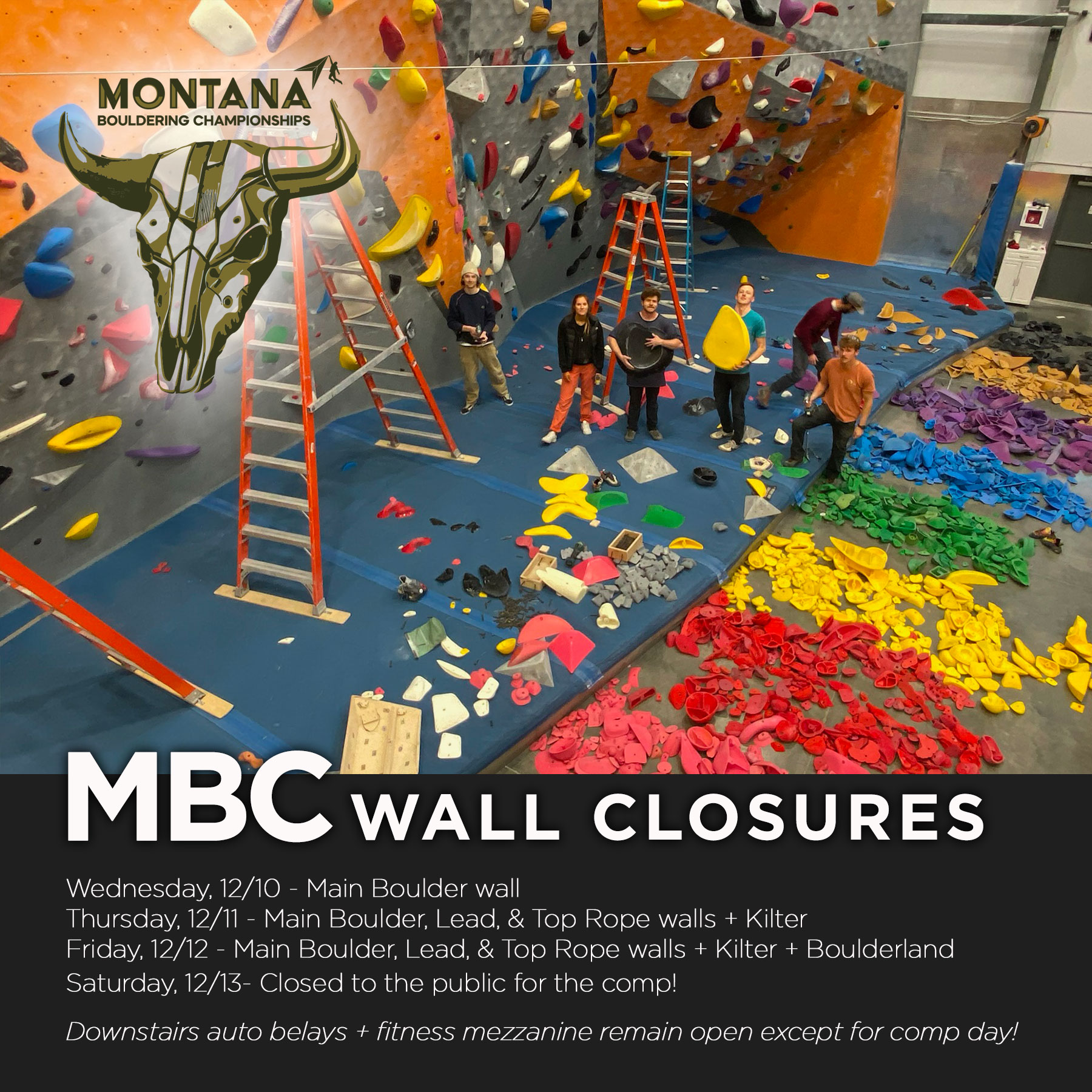 No Appointment or Experience Needed, All Ages Welcome! MBC 2025Register now for the Montana Bouldering Championships on Saturday, December 13th. Register Now MBC 2025 Setting ScheduleImportant details for the setting schedule the week of MBC – Wed, Dec 10 through Sat, Dec 13. Register Now MBC 2025 YOUTH Schedule ChangeClimbing time extended for youth climbers – 9:00am to 1:00pm! Give a gift they're sure to love...Make gift-giving easy with a STEEPWORLD gift card. Everyone loves the gift of climbing! Check Off Your List! Try Our Intro to Climbing ClassesA beginner’s intro to cover all the things you need to get into the world of climbing! $35, initiation fee waived if you join after attending. Sign Up Today! STEEPWORLD Birthday Parties!Fun for kids, easy for parents! Book your turnkey birthday party today. Book Yours Now